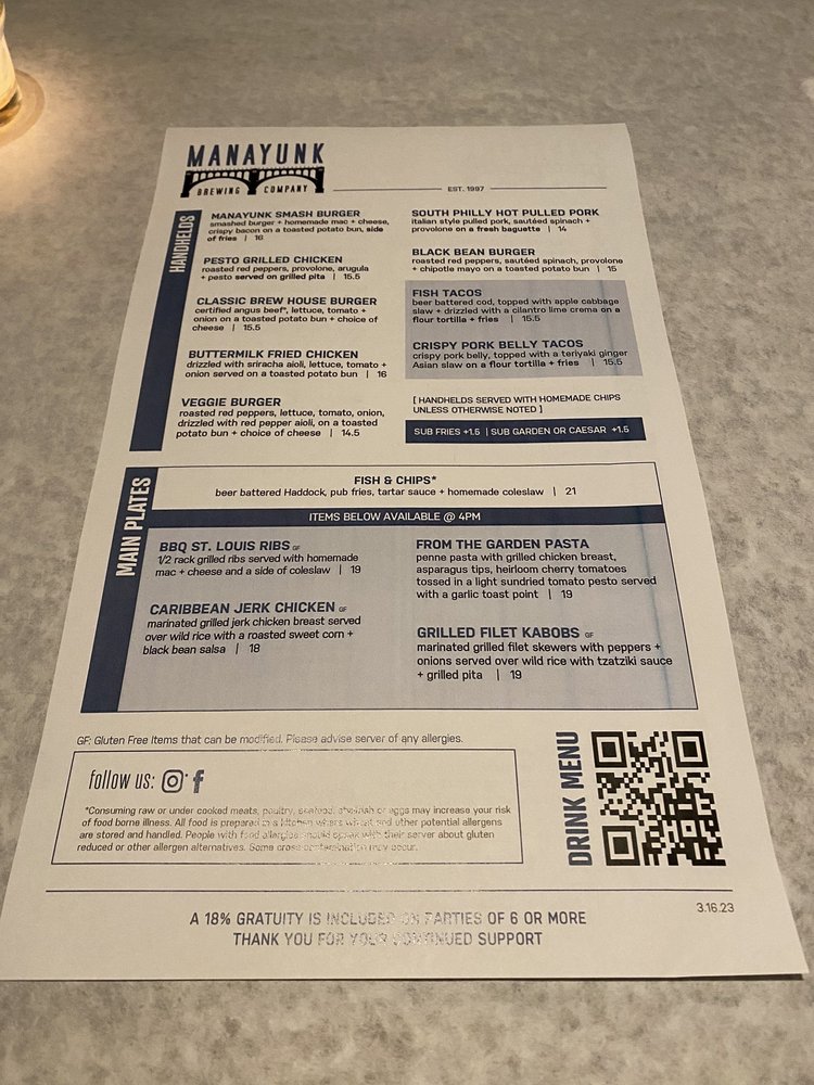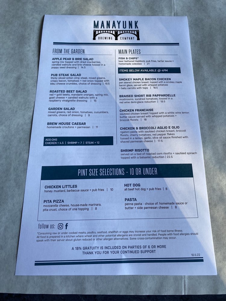 Whether you’re there for happy hour or a special family gathering, Manayunk Brewing Company promises friendly service and a delightful culinary journey.